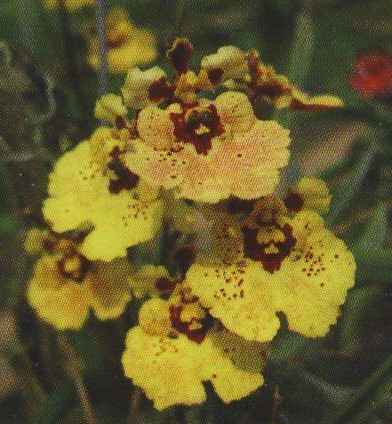 Tolumnias are miniature oncidiums with triangular succulent leaves that form small fan shaped growths and are commonly called equitant oncidiums. These come white to yellow to red and bloom year round for us. This group will almost always re-bloom on the same stem.